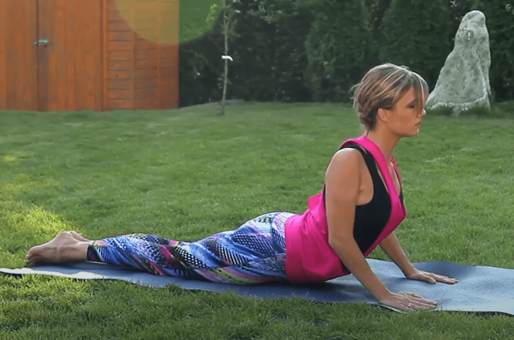 Feküdj a hasadra. Lábaidat tedd egymás mellé. Lábaidat igazítsd be: emeld fel a jobb lábadat, és forgasd be a jobb lábfejed. Emeld fel a bal lábadat, és forgasd be a bal lábfejed. Tedd a tenyeredet a vállad alá. Könyököd szorosan legyen magad mellett. A válladat forgasd hátrafelé és húzd lefelé. A lapockáid érjenek össze. Csigolyáról csigolyára emelkedj föl. Először a nyaki csigolyák, majd a felsőháti csigolyák, majd a középháti csigolyák kapcsolódnak be a munkába. Amennyire csak lehet, a hátizmok segítségével emelkedj, és csak a legkésőbb segítsen a kezed. Csigolyáról csigolyára, lassan gyere le. Minél lassabban jössz le, annál jobb. Újra finoman, lassan told fel magad. Szemed 60 fokos szögben fölfelé néz picit.
